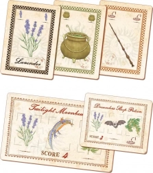 - 88 kártya (összetevők, speciális akciók, bográcsok), 8 közös bájitalkártya, 8 személyes bájitalkártya