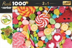 - 1000 darabos puzzle vonzó, édességek témával, a kész méret kb. 68,3 × 48 cm.