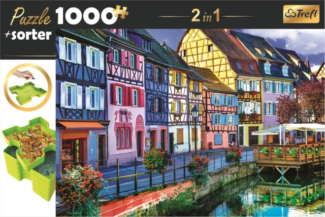 Fedezze fel a franciaországi Colmar városának báját ezzel a kiváló minőségű, 1000 darabos kirakóval és a praktikus 2 az 1-ben válogatóval. A készlet áttekinthető válogatást, könnyű tárolást és kényelmes hordozást kínál a hat, kirakódarab alakú, egymásra rakható tartálynak köszönhetően.