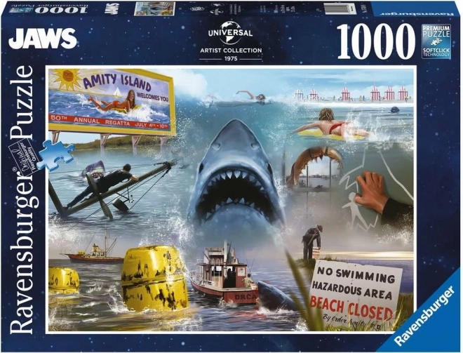 Élvezze a hosszú órákon át tartó szórakozást a prémium Ravensburger puzzle-lel az ikonikus Állkapocs film motívumával. A precíz gyártási technológiának köszönhetően a darabok tökéletesen illeszkednek, tartják a formát, a kész kép pedig élénk színekkel és finom felületkezeléssel tűnik ki.