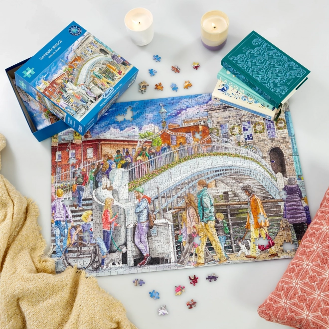 Merüljön el a nyugalom és nosztalgia világában a prémium GIBSONS Ha'penny híd kirakóval. A kép hangulatos jelenetet ábrázol, nagy hangsúlyt fektetve a színekre és részletekre, ami a kezdőknek és a tapasztalt kirakózóknak egyaránt örömet okoz. A 1000 darab ideális kihívást nyújt hosszú estékhez és közös családi pillanatokhoz.