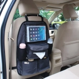 A Deluxe rendező ideális az autója rendben tartására. Az védőzseb révén könnyen hozzáférhet a legfeljebb 9,5” átmérőjű tablethez. Két hálós zseb biztosít tárolóhelyet apróságoknak, míg két mély, tágas elülső zseb alkalmas nagyobb játékok, palackok és egyéb szükségletek számára.