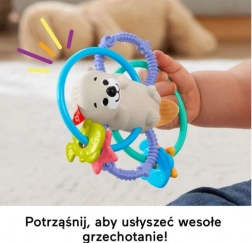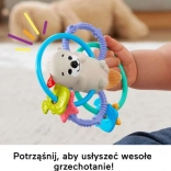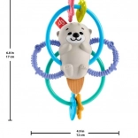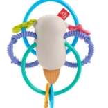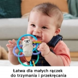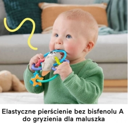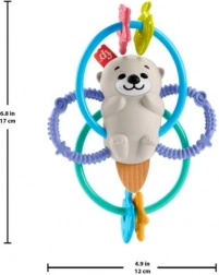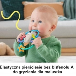 Fisher-Price Vidra kialakítása lehetővé teszi, hogy a kis kezek könnyedén megfogják rugalmas gyűrűit, rázzák és forgassák azokat. Ez a játékos rágóka textúrázott, BPA-mentes műanyagokból készült, amelyek segítenek a fogzásban.