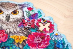A kész puzzle otthona egyedi kiegészítője lesz – állítsa ki a titokzatos baglyot polcra vagy asztalra.
