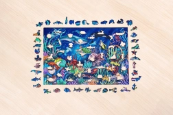 Fedezze fel az összerakás örömét a prémium víz alatti világ motívumú fa kirakóval. Minden elem egyedi alakú, és tökéletesen illeszkedik egymáshoz a zökkenőmentes, pihentető kirakózáshoz. A kiváló minőségű színes nyomat a fán élénk színekkel és részletekkel tűnik ki, ami gyerekeknek és felnőtteknek egyaránt örömet szerez.