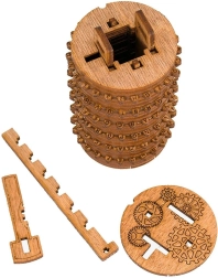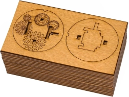 A fa Cryptex egy átgondolt mechanikus fejtörő, amely 57 precíz alkatrészből áll, természetes nyírfából. A betűs forgógyűrűk kombinációs zárat alkotnak, amely a helyes kód igazításával nyílik. Belül titkos rekesz (2 × 2 × 8 cm) található, ideális kis meglepetés, üzenet vagy apró ajándék számára.