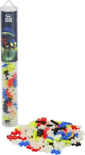 Kreatív készlet Plus-Plus Glow 100 darabot tartalmaz vonzó tubusos csomagolásban, ideális utazásokhoz. Készíts saját terveket anyagokkal, amelyek sötétben világítanak!