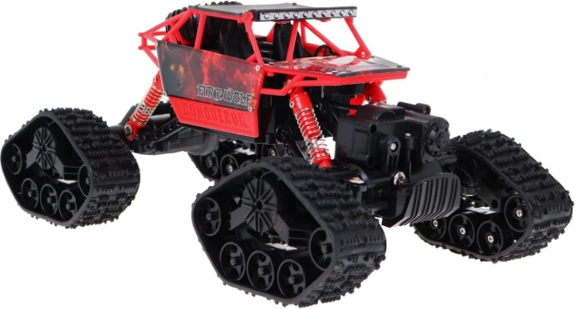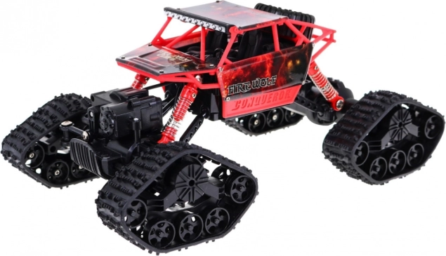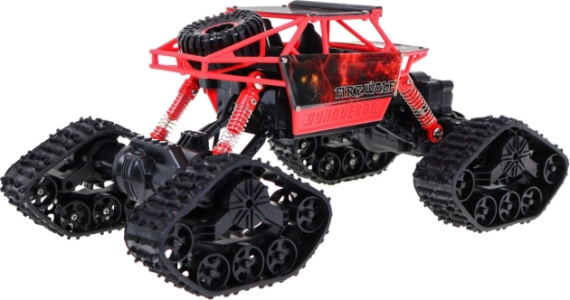 Ez a sokoldalú terepmodell ideális 8 éves kortól. Könnyedén válthat a puha gumikerekek között a gyorsabb haladáshoz és a gumilánctalpak között a maximális tereptapadásért. A megerősített műanyag alváz és a rugózott felfüggesztés segít simán átlendülni az egyenetlenségeken, míg a 4x4 összkerékhajtás minden felületen magabiztosságot ad.