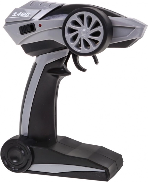 A teljesen funkcionális, 2,4 GHz-es pisztolymarkolatú távirányító zökkenőmentes előre/hátra haladást és precíz kanyarodást kínál. A praktikus összetartás (toe) állítás megkönnyíti az egyenesfutást, a ütközésgátló kialakítás pedig a lökhárítóval csillapítja az ütközéseket kültéri és beltéri játék során.