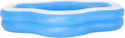 A 270 × 198 × 51 cm méretű BESTWAY felfújható medence az egész család számára nyújt kikapcsolódást. Két felfújható gyűrű biztosítja a stabilitást, míg a formázott falak és a két integrált ülés kényelmes hátmenesztést ad. A praktikus italtartók gondoskodnak róla, hogy frissítői mindig kéznél legyenek, az átlátszó ablak pedig plusz élményt ad a gyerekeknek.