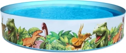 Teremtsen a gyerekeknek saját vízi világot a színes dinoszaurusz mintával, amely első pillantásra lenyűgözi őket. A feszítő szerkezet gyors összeszerelést és játék közbeni stabilitást biztosít. A minőségi anyagok hosszú élettartamot és biztonságos vízi szórakozást garantálnak.