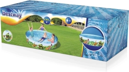 A praktikus 244 × 46 cm-es méret elegendő teret kínál a pancsoláshoz és a felfrissüléshez a forró napokon. A medence 3 éves kortól ajánlott, és a vinil alj valamint a PVC oldalfalak jobban ellenállnak a mindennapos igénybevételnek. A csomag része egy javítófolt is az apró sérülések gyors orvoslására.