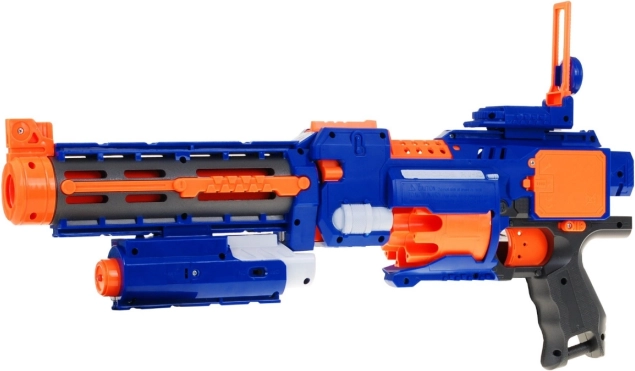 Húzza meg a ravaszt, és a blaster folyamatosan lövi ki az egyes szivacslövedékeket, akár másodpercenként 3-as ütemben. A meghajtásról 3× AAA-val működő elektromos kompresszor gondoskodik (nem tartozék).