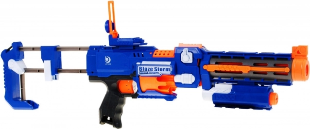 A Blaze Storm izgalmas akciót hoz 2 az 1-ben kivitelben: a levehető válltámasszal stabil, pontos lövésre alkalmas puskát kap, nélküle pedig nagy, pisztolyszerű blastert a gyors mozgáshoz. A teljesen automata elektromos meghajtás a 10-lövetű dobtárból adagolja a lövedékeket, akár másodpercenként 3 lövéssel, így nem veszít ritmust a játékban.