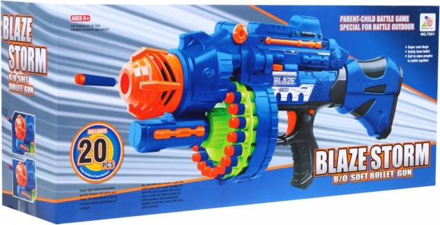 Élvezd az akciódús szórakozást a 6+ korosztálynak szánt, félautomata BLAZE STORM blasterrel. 20 lövedékes dobtár, a csomagban 40 biztonságos habszivacs lövedék, akár 10 m hatótáv és elektronikus reteszelés elakadás esetén a gondtalan játékért.