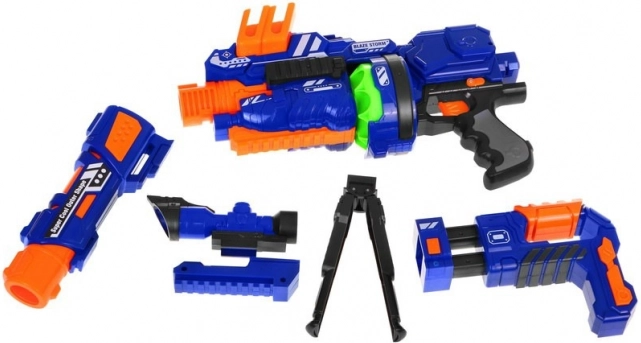 A Blaze Storm moduláris gyerekpuska akciódús, mégis biztonságos szórakozást nyújt otthon és a szabadban. Az elektromos félautomata, dobos mechanikával és tárral gyors egyes lövéseket és rövid sorozatokat tesz lehetővé, miközben a habgolyók puhák és kíméletesek. A homloktámasz, a stabilizátor és a csőhosszabbítás révén a gyerekek megtanulhatnak pontosan célozni és különféle játékszcenáriókat alkotni.