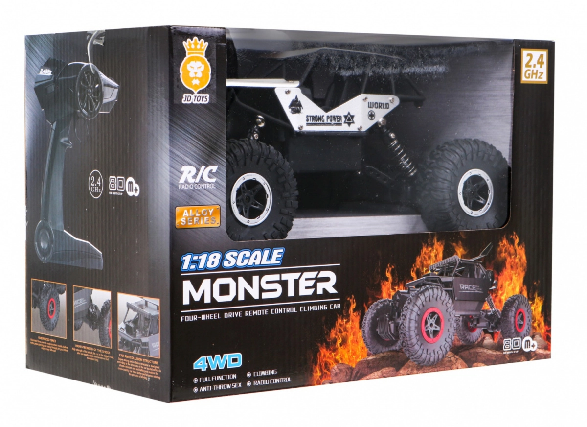 A RC Crawler Monster ideális választás a terepezés szerelmeseinek 6 éves kortól. A masszív váz, az ütközésálló kialakítás és a négykerék-meghajtás kiváló tapadást és stabilitást nyújt kavicson, füvön és egyenetlen talajon. Az ergonomikus távirányító 2,4 GHz-es technológiája zavarásmentes irányítást tesz lehetővé kb. 40 méteres távolságig.