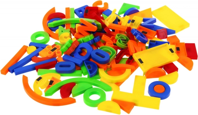 Betűk, számjegyek, formák és szimbólumok komplett mixe, végtelen kombinációval szókirakáshoz, számoláshoz és kreatív alkotáshoz.