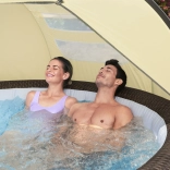 Az előtető véd az UV-sugárzás és a szél ellen, így minden időjárásban kellemes fürdőélményt biztosít.