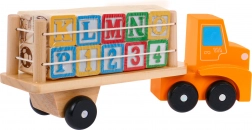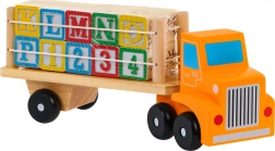 Fából készült teherautó utánfutóval és ábécés kockákkal gyerekeknek 2+