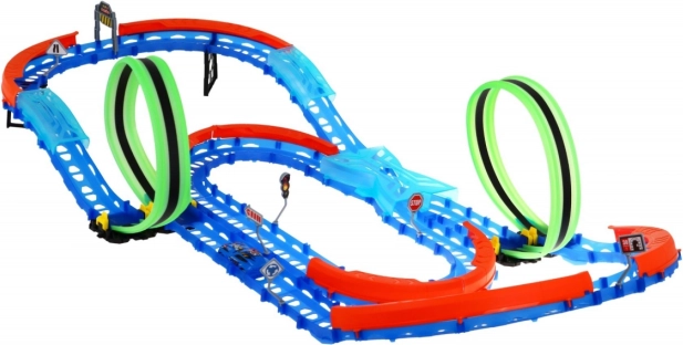 | | A két hurokkal ellátott nagy pálya 3 éves kortól ajánlott. A játék tápellátása: 1 x 3,7 V akkumulátor – kisautó (a csomag tartalma) és 2 x AAA elem – távirányító (nem része a csomagnak). A pálya fluoreszkáló, sötétben világít. A kisautó LED háttérvilágítással rendelkezik, menet közben lenyűgöző effektusokat kelt. Élvezd a szórakozást. | |