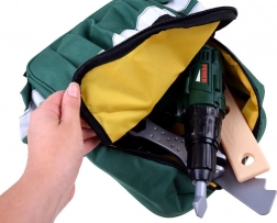 A gyermek hátizsák szerszámokkal úgy van tervezve, hogy a gyerekek kezében a valódi szerszámokat szimulálja. Minden játék a készletben könnyű a műanyag anyagnak köszönhetően és biztonságos a kialakítása révén, amely megfelel a kicsik igényeinek. Tartalmaz zsebes rekeszeket is a szerszámok könnyű rendszerezéséhez, amelyek lehetővé teszik a kis ezermester számára, hogy minden szükséges dolgot kéznél legyen.