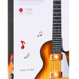 Ez a stílusos gyerek gitár fa hatású dizájnnal ideális választás a kis zenészeknek. Kompakt méreteinek köszönhetően már 3 éves kortól remekül kézre áll, és ösztönzi a ritmus és a zenei kreativitás felfedezését. A gitár hat fémhúrral van felszerelve, amelyek érintésre hangot adnak, és két módot kínál – rock kíséret lejátszását és szabad pengetést.