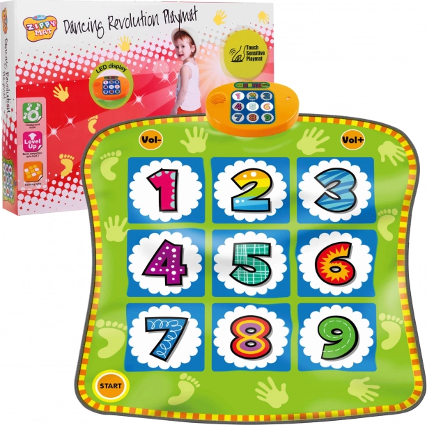 A nagy, színes panel kijelzője véletlenszerűen választ 1–9 közötti számokat, és hangok kísérik a játékot. Válassz a 3 nehézségi szint közül, állítsd a hangerőt (VOL-/VOL+), és hagyd, hogy a gyerekek biztonságban szórakozzanak otthon. A szőnyeg az energiatakarékosság érdekében magától kikapcsol 2 perc tétlenség után.