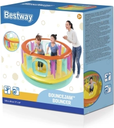 Biztosíts órákon át tartó, biztonságos szórakozást a gyerekeknek a BESTWAY felfújható trambulinnal. A puha, felfújható padló, a párnázott oldalfalak és a könnyű bejutást biztosító ablakok kényelmessé és biztonságossá teszik az ugrálást, hempergést és mászást. A színes dizájn játékra ösztönöz, míg a strapabíró vinil anyag hosszú élettartamot garantál. Ideális 3–6 éves gyerekeknek, teherbírása akár 85 kg.