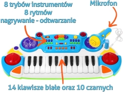 Lehetővé teszi a gyerekek számára, hogy felfedezzék zenei tehetségeiket ezzel a csodálatos zenei készlettel! Tartalmaz billentyűket, mikrofont, és fényhatásokat, melyek minden gyermeket elbűvölnek. Két oktávval, állítható hangerővel, és különféle ritmusokkal van felszerelve, ideális kis zenészek számára!