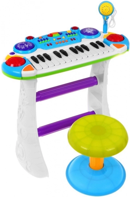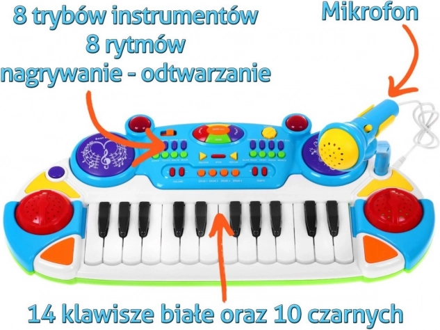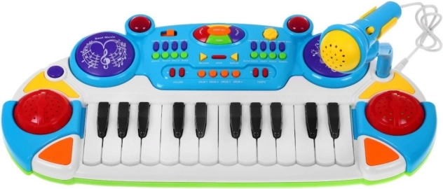Kék Zenei Készlet Gyerekeknek 3+ Billentyűkkel és Mikrofonnal Fényekkel és Hangokkal 2 Oktáv