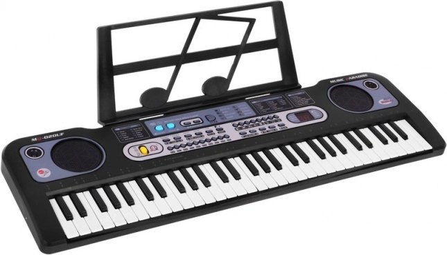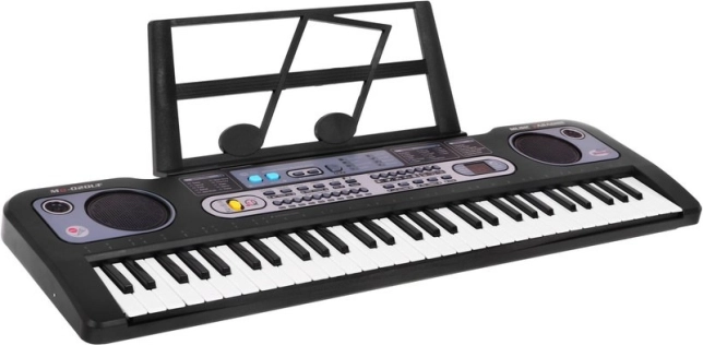 A kottaállvány megkönnyíti a kották olvasását játék közben, míg a mikrofon további szórakozást nyújt.