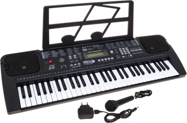 A csomag tartalmaz egy mikrofont, hálózati adaptert és kottatartót a teljes zenei élményért.