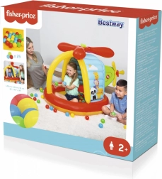 Ez a színes felfújható helikopter puha, biztonságos játszóteret teremt. A gyerekek élvezhetik az interaktív elemeket, például a két levehető rotort, amelyeket kézzel lehet forgatni, valamint a 25 könnyű műanyag labdát. A FISHER-PRICE állatkákkal díszített vidám minta támogatja a képzelőerőt és az örömteli felfedezést.