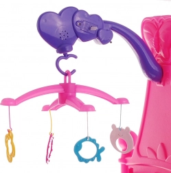 Ez a stílusos bababölcső a 2 használati módot ötvözi – állhat négy lábon babaágyként, vagy finoman ringhat bölcsőként. A készlet része a vidám, lelógó formákkal ellátott forgó hanghatásokkal, amely fejleszti a képzelőerőt és az érzékelést.