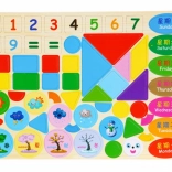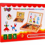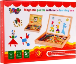 A praktikus fa doboz a tartozékok tárolására szolgál, alján pedig szorzótábla található a gyors ellenőrzéshez. A mellékelt kártyák és útmutatók segítségével a gyerekek mágneses formákból képeket rakhatnak ki, így fejlesztve a kreativitást és a finommotorikát.