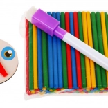 - Gazdag tartozékkészlet: szám- és műveletkártyák, figurális mágnesek, számoló pálcikák, törölhető filc.