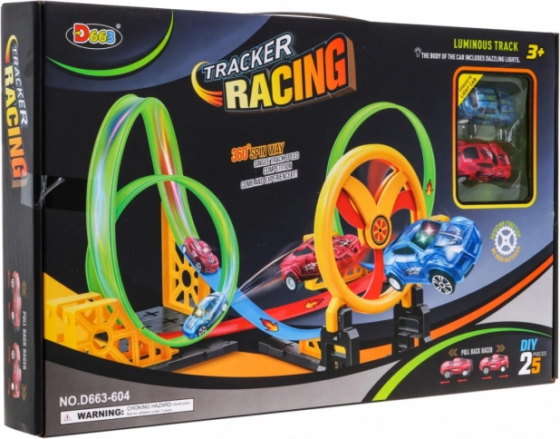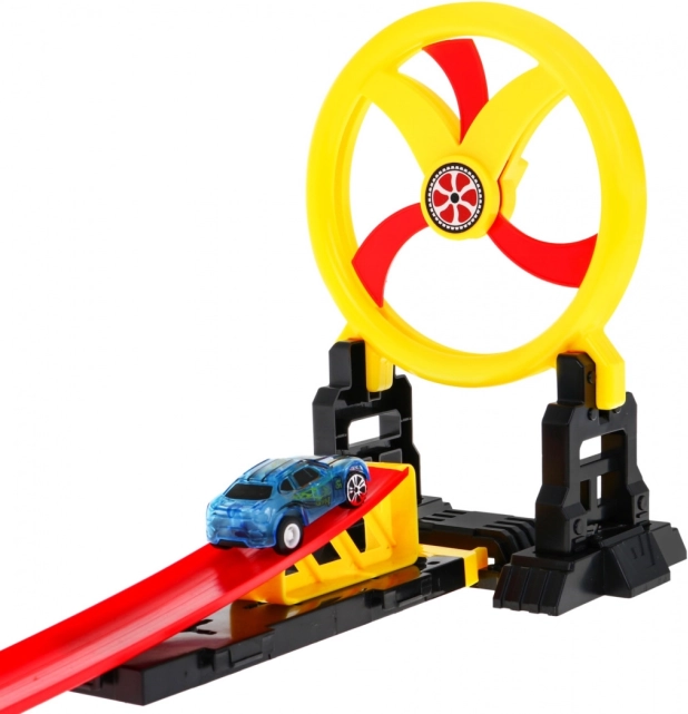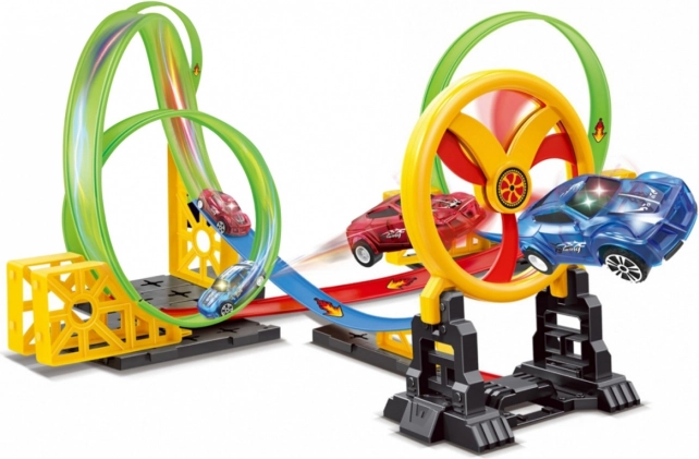 Ez a fantasztikus versenypálya kis autóknak lett tervezve, amelyek végigsuhannak és átmennek három hurkon, hogy végül áthaladjanak a mozgatható karikán. Az autók 3x AG13 elemmel működnek (tartalmazza) és LED világítással rendelkeznek a még szórakoztatóbb élmény érdekében.