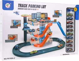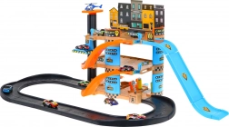 Ez a nagy és robusztus parkolótorony négy szintnyi szórakozást kínál. A felső szinten található a helikopterleszálló, míg lefelé egy szórakoztató csúszda vezeti le a kisebb autókat. Minden szinten találhatók parkolóhelyek, és a második szinten egy rámpa vezet lefelé. Az alsó szinten találod az autómosót, a benzinkutat és a mozgatható szervizemelő. Minden emelet elérhető a kézzel vezérelt nagy teljesítményű lifttel.
