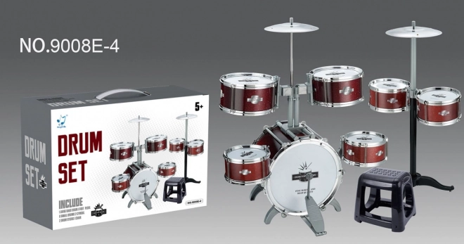 | - nagy dob pedállal az ütésekhez, - két közepes dob, - 4 kisebb dob, - 2 dobverő, - szék. | |||