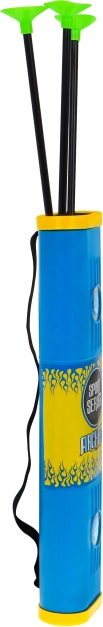 A készlet három tapadókorongos nyilat tartalmaz, amelyek biztonságosak a beltéri és kültéri használatra egyaránt. A nyilak színes kosárban tárolhatók, amely könnyen hordozható.