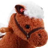 A bájos, nagyon puha plüssből készült hintaló 1 éves kortól örömet szerez. Kényelmes háttámlát és biztonsági öveket, fa fogantyúkat a biztos fogáshoz, valamint interaktív vágtázó és nyerítő hangokat kínál a fül megnyomására. Ideális a egyensúly, koordináció és a képzelet fejlesztésére – ráadásul CE tanúsítvánnyal.