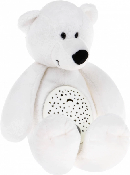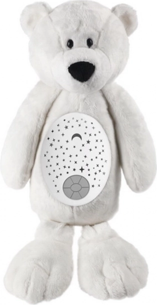 Ez az interaktív mackó megnyugtató légkört teremt a könnyebb elalváshoz. A pocakjában lévő projektor a mennyezetre és a falakra vetíti a finom csillagos eget piros, kék, zöld és lila színekben, amelyek vizuálisan lekötik és egyben megnyugtatják a gyermeket. A puha, kellemes tapintású plüss biztonságos a csecsemők számára, és ölelgetésre csábít.