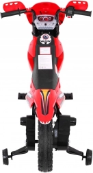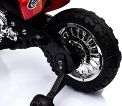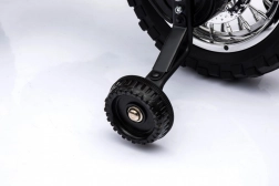 Ez a gyermek elektromos motor ideális választás az első vezetési élményekhez. A masszív műanyag szerkezet gumírozott futófelületű kerekekkel stabilitást és halk működést nyújt, míg a segédkerekek támogatják a kezdő motorosok egyensúlyát és magabiztosságát. Az első LED lámpa növeli a láthatóságot és vonzó megjelenést kölcsönöz.