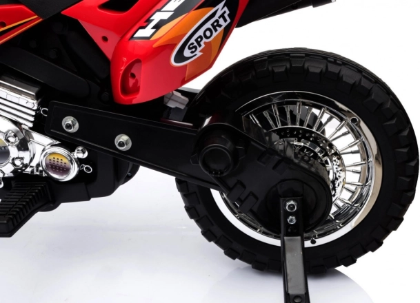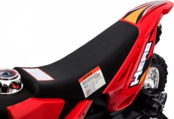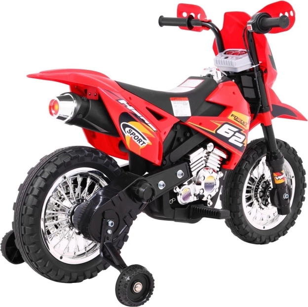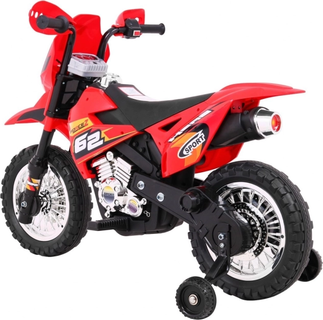 Stílusos, akkumulátoros gyermek krosszmotorkerékpár élénk piros színben, amely biztonságos szórakozást nyújt bent és kint egyaránt. 6V-os RS-390 motorral, jobb tapadást adó gumírozott futófelületű kerekekkel, első LED lámpával és stabilizáló kerekekkel rendelkezik az első utakon nyújtott magabiztosságért. A markolatba integrált, intuitív gázvezérlés és a hangpanel hangokkal és dallamokkal valósághű élményt biztosít.