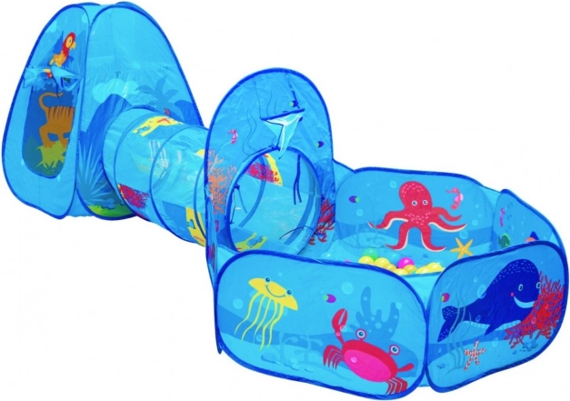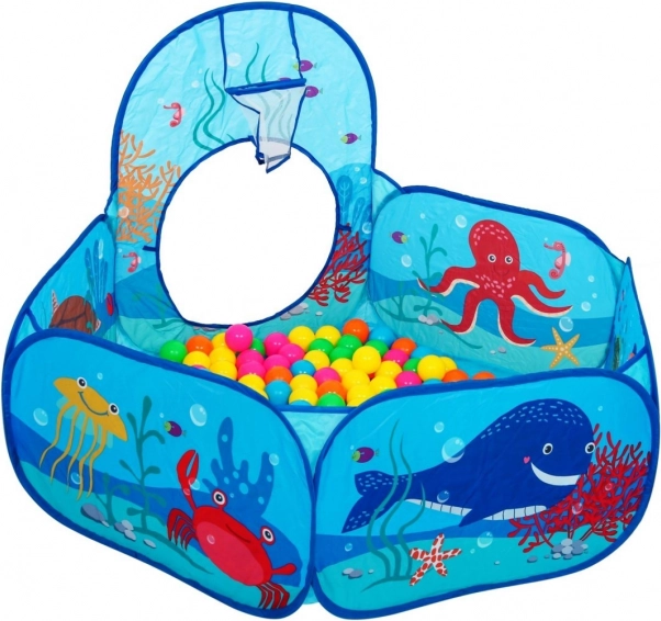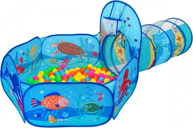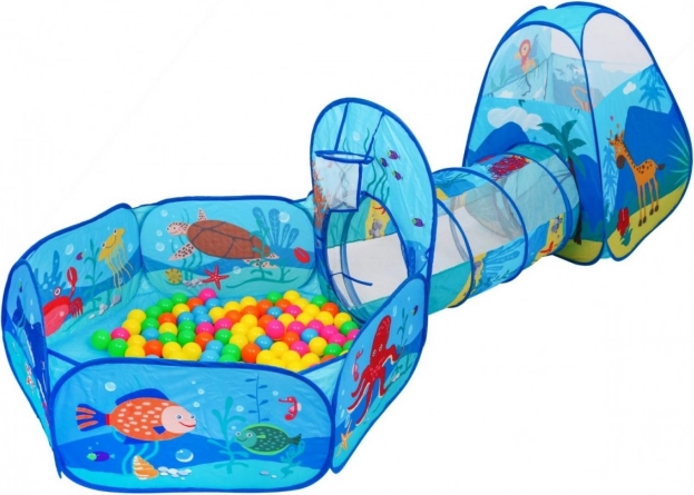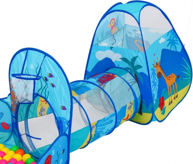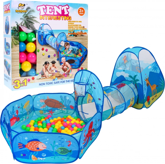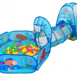 | Bemutatjuk a 3 az 1-ben gyerek játszókészletet. Száraz labdamedence mini kosárral + alagút + sátor. Minden elem önálló játékelemként is használható. Összecsukható, pillanatok alatt felállítható, összehajtva kevés helyet foglal. Beltéri, gyerekszobai és kültéri, kerti játékra egyaránt alkalmas. A készlet 100 darab, 6 cm átmérőjű színes labdát tartalmaz. A játék 3 éves kortól ajánlott, CE tanúsítvánnyal rendelkezik. | |