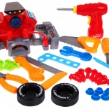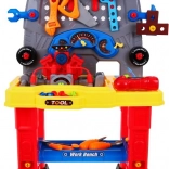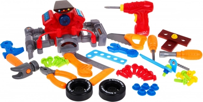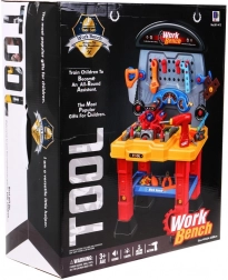 A készlet különféle szerszámokat tartalmaz, mint kalapács, csavarhúzó, fűrészek és kulcsok. Ezek a szerszámok fejlesztik gyermeke kézügyességét és támogatják a fantáziáját.
