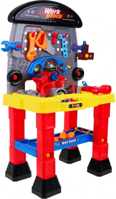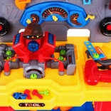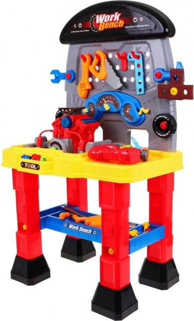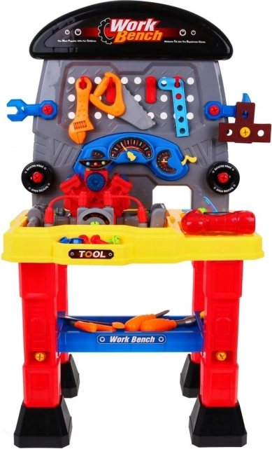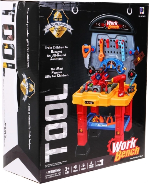 A motoros gyermek műhely gazdag szerszámválasztéka tökéletesen fejleszti gyermeke manuális készségeit, képzelőerejét és kreativitását. A készlet része egy elemmel működő motor valósághű hangokkal és fényhatásokkal, amely lenyűgöz minden kis rajongót.