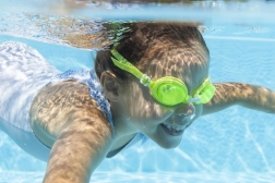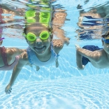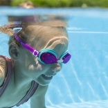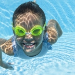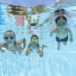 A nagylátószögű, ütésálló lencsék kiváló rálátást biztosítanak a víz alatt, megkönnyítve a tájékozódást az úszás tanulásakor.
