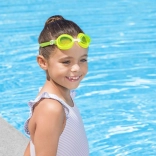 Az ergonomikus kialakítás az állítható orrnyereggel és a szilikon pánttal pontosan a gyermek fejformájához igazítható. A lencsék ütésállóak és UV-védelemmel rendelkeznek, így fedett uszodában és napsütésben is ideálisak. A rózsaszín szín vidám megjelenést kölcsönöz minden úszásnak.